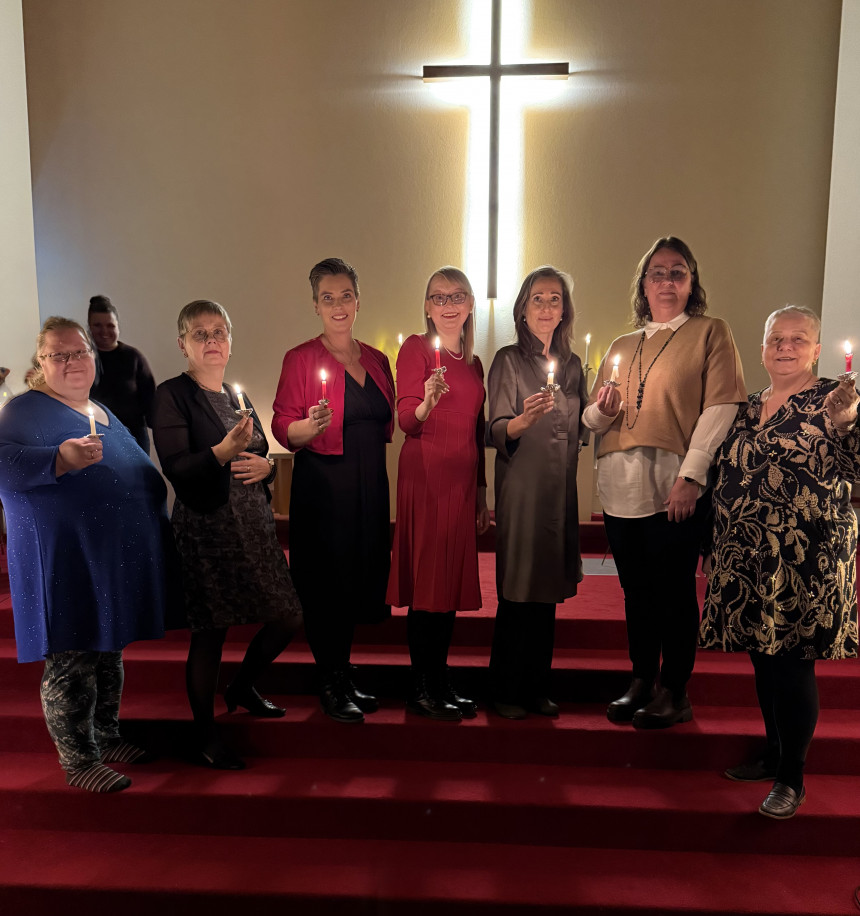 Nemendur fluttu tvö lög, Hátíđ fer ađ höndum ein sem er íslenskt ţjóđlag og svo úkraínskt jólalag Carol of the bells. Ţađ voru söngnemendur frá báđum skólum beggja megin fljóts sem voru í flytjendahópnum og sá Sándor Kerekes organisti um undirleik.